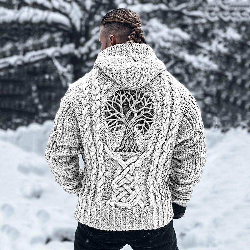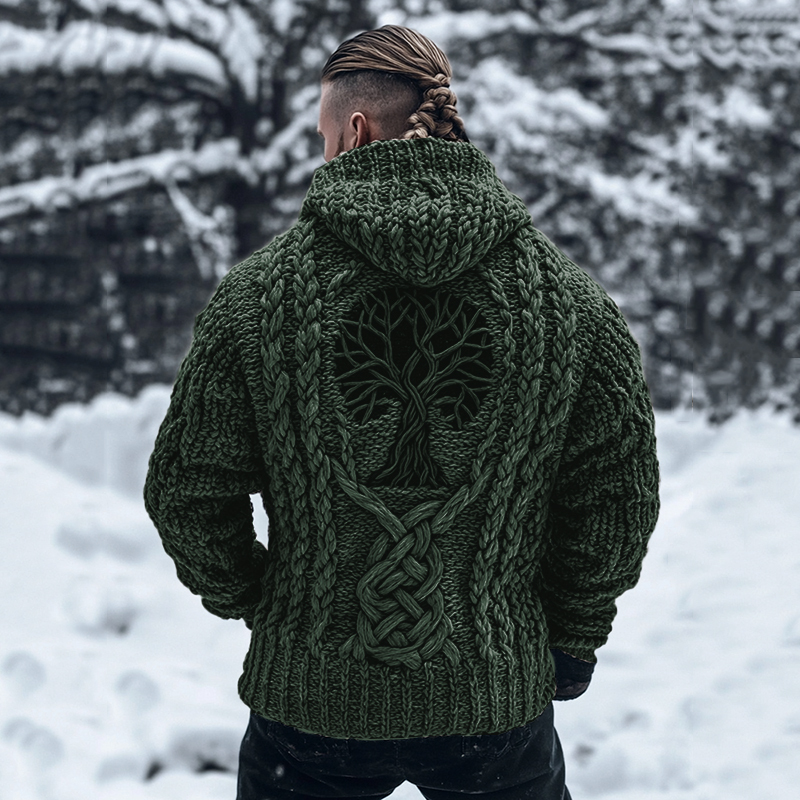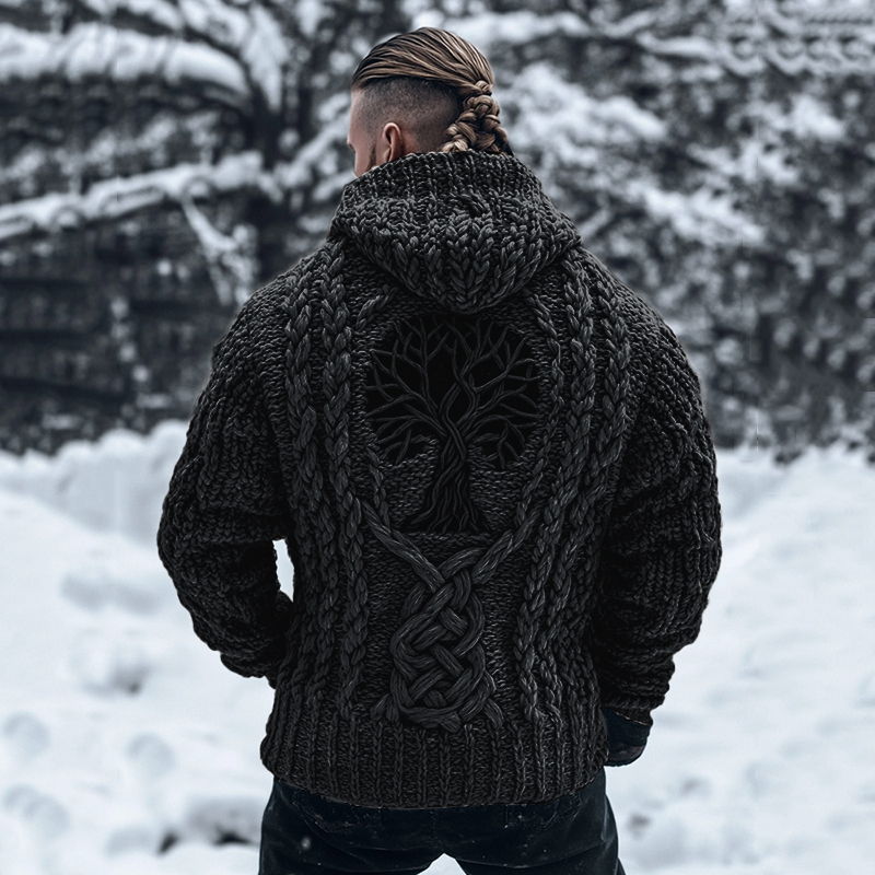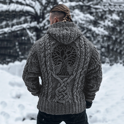 Men's Viking Tribal Tree Of Life Celtic Chunky Knit Hooded Sweater
