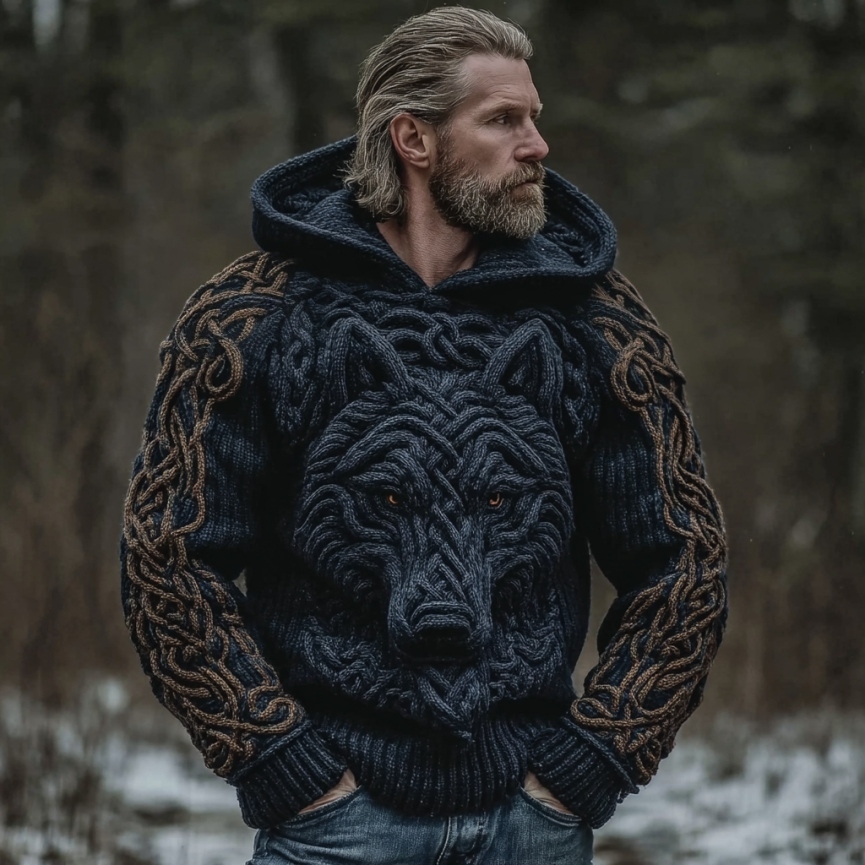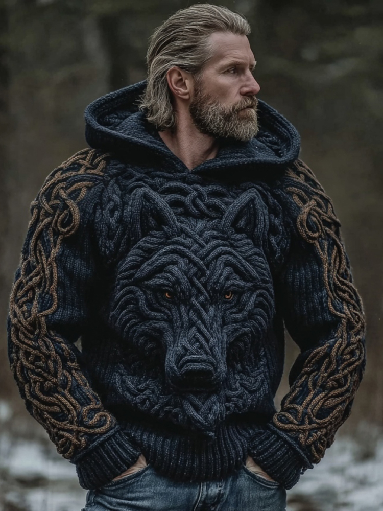 Men's Viking Wolf Art Celtic Hooded Sweater