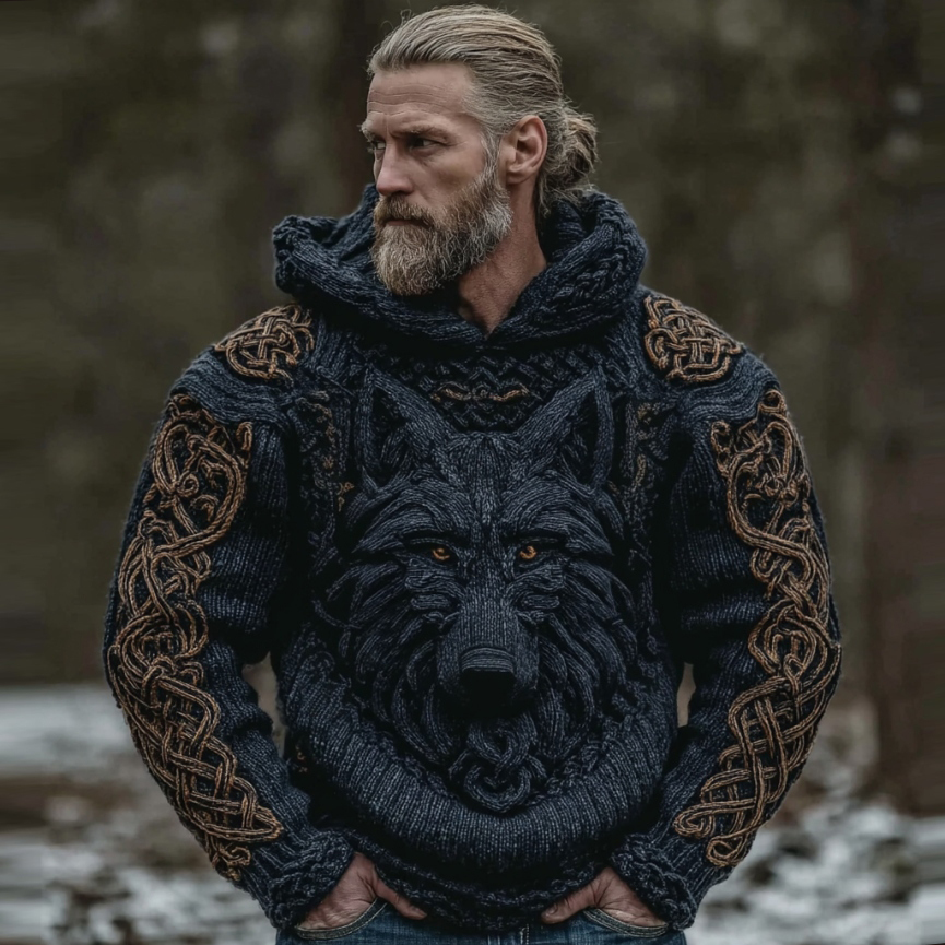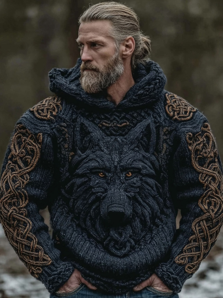 Men's Viking Wolf Art Celtic Hooded Sweater