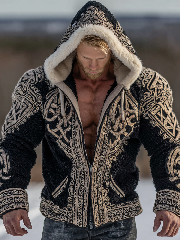 Men's Vintage Viking Celtic Knot Art Knit Zip Up Hooded Sweater