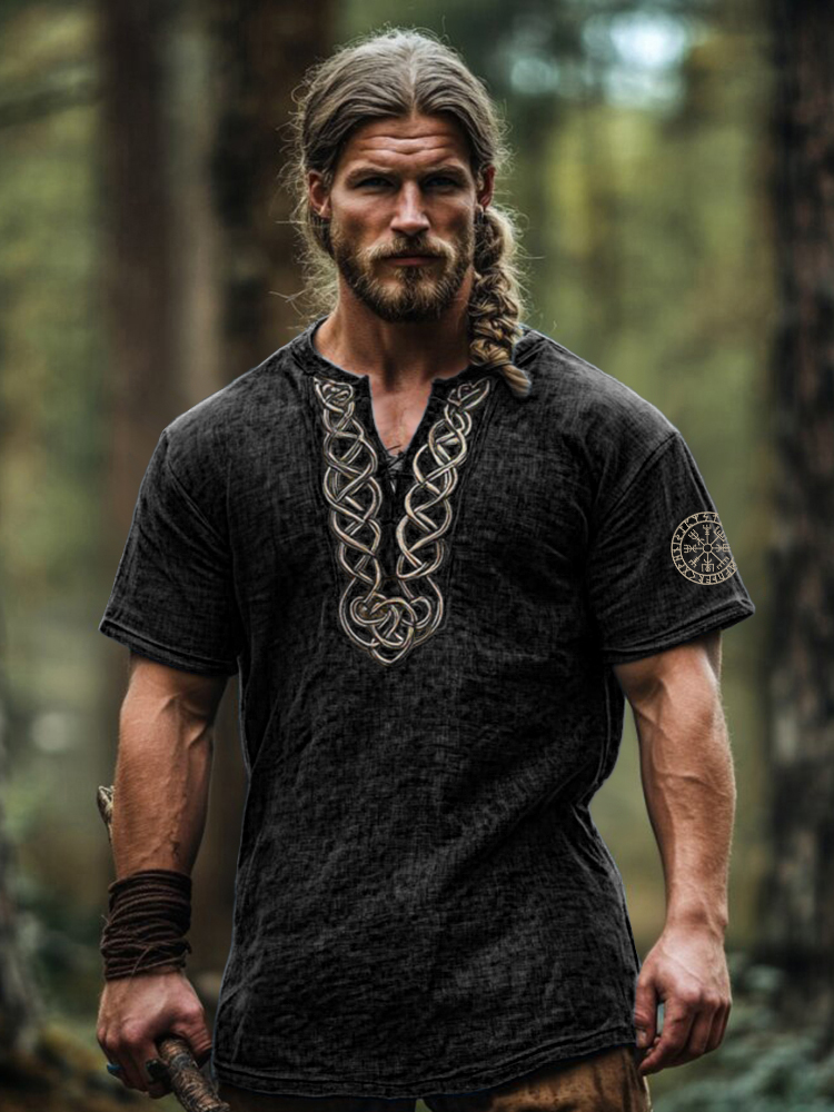 Men's Vintage Viking Celtic Knot Art Linen Shirt