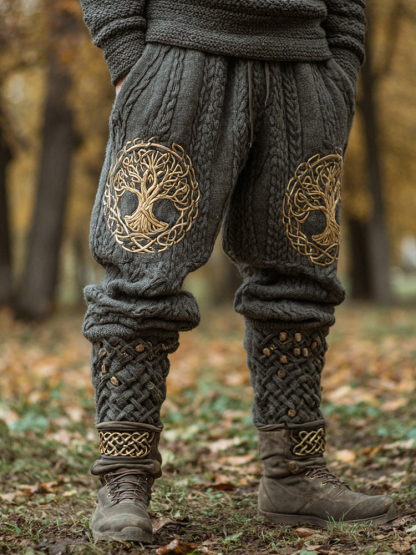 Men's Vintage Viking Celtic Knot Tree Of Life Chunky Knit Pants