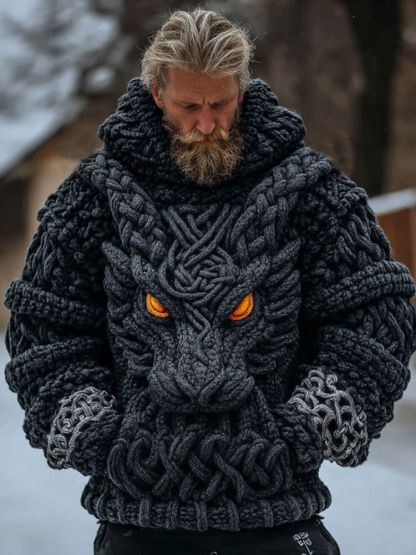 Men's Vintage Viking Dragon Celtic Knot Art Knit Hooded Sweater
