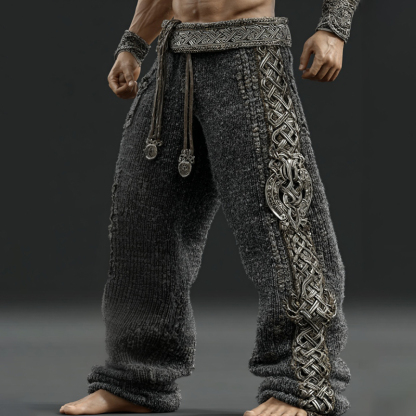 Men's Vintage Viking Tribal Jacquard Celtic Art Knitted Sweatpants