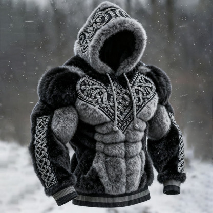 Men's Vintage Viking Tribal Jacquard Celtic Muscle Line Inspired Art Plush Warm Hoodie