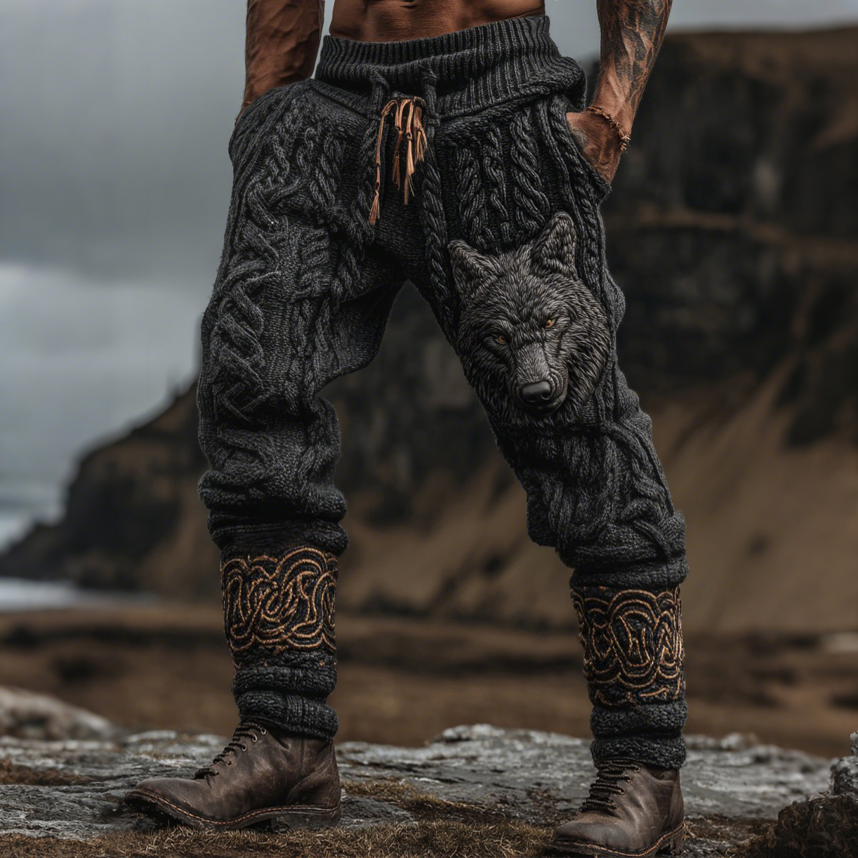 Men's Vintage Viking Wolf Celtic Knot Cozy Chunky Knit Sweatpants