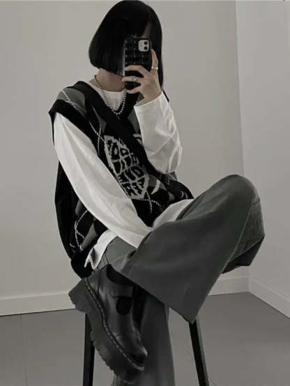 Mitch | Women’s argyle sweater vest with graphic heart design