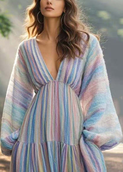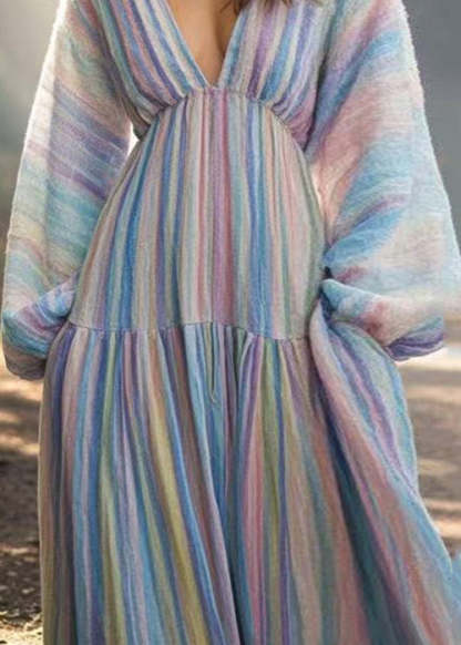 New Rainbow Striped Pockets Long Dresses Spring