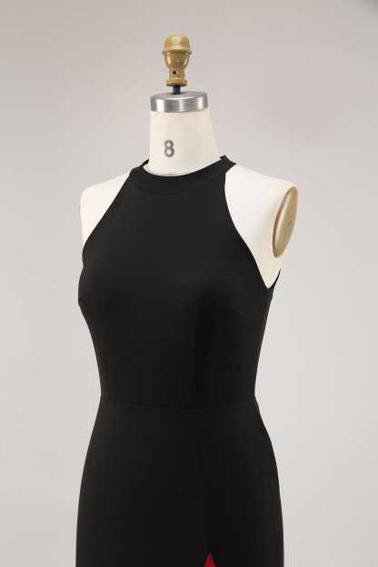 Command attention with this striking black and red halter neck mermaid maxi dress. The sleek silhouette hugs your figure, while the bold color contrast adds drama. Perfect for evening parties or formal celebrations where a bold, confident style makes all the difference.