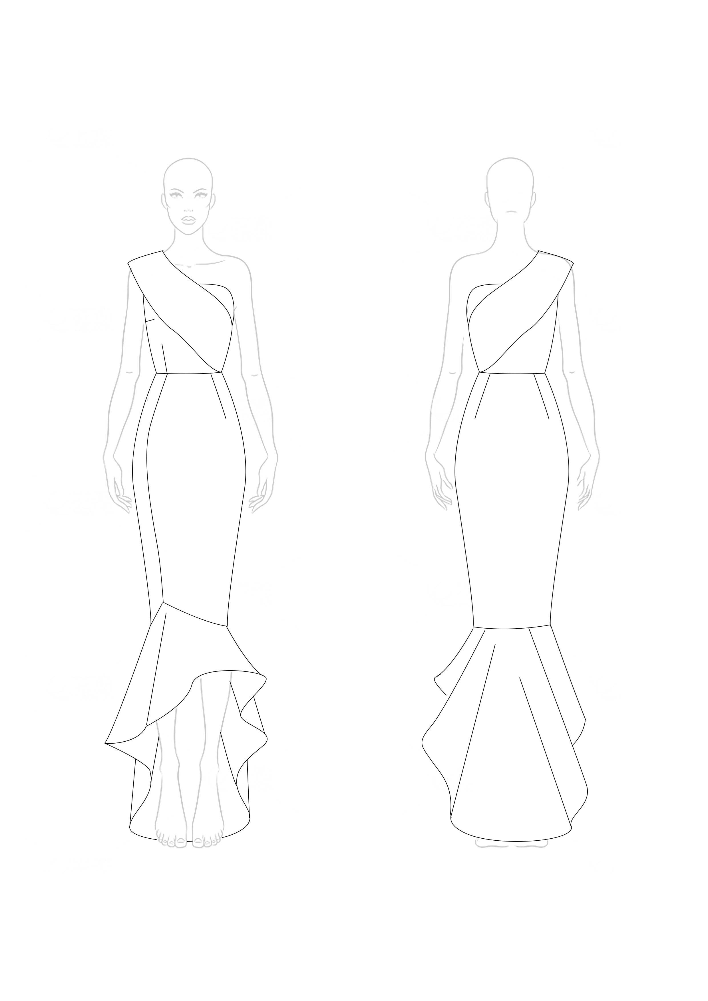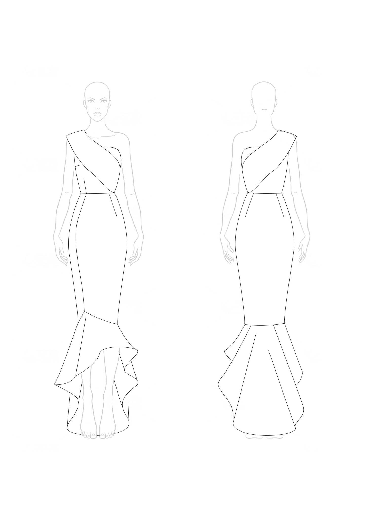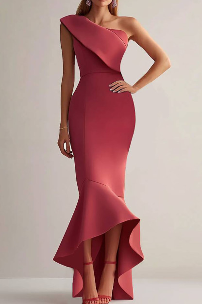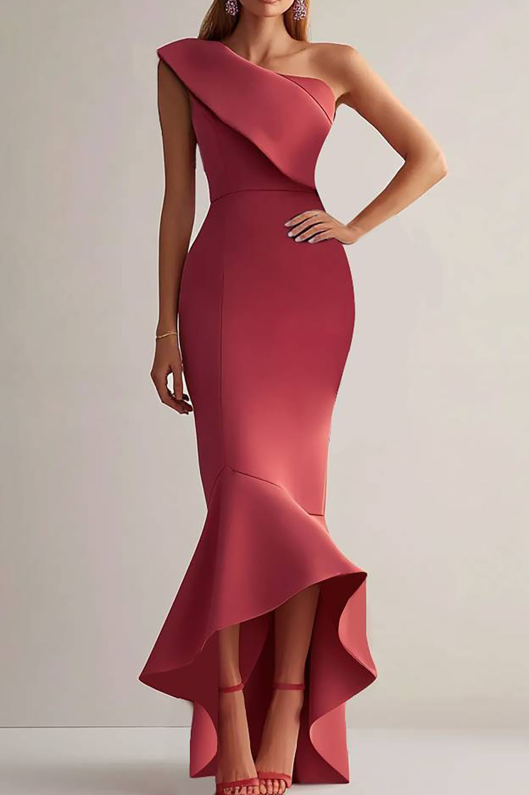 Party Semi-Formal Dress Red One-Shoulder Ruffle Mermaid Bodycon Maxi Dress