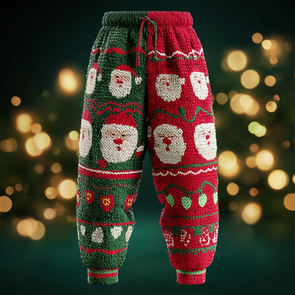 Santa Claus And Fairy Light Pattern Knitted Thermal Pants