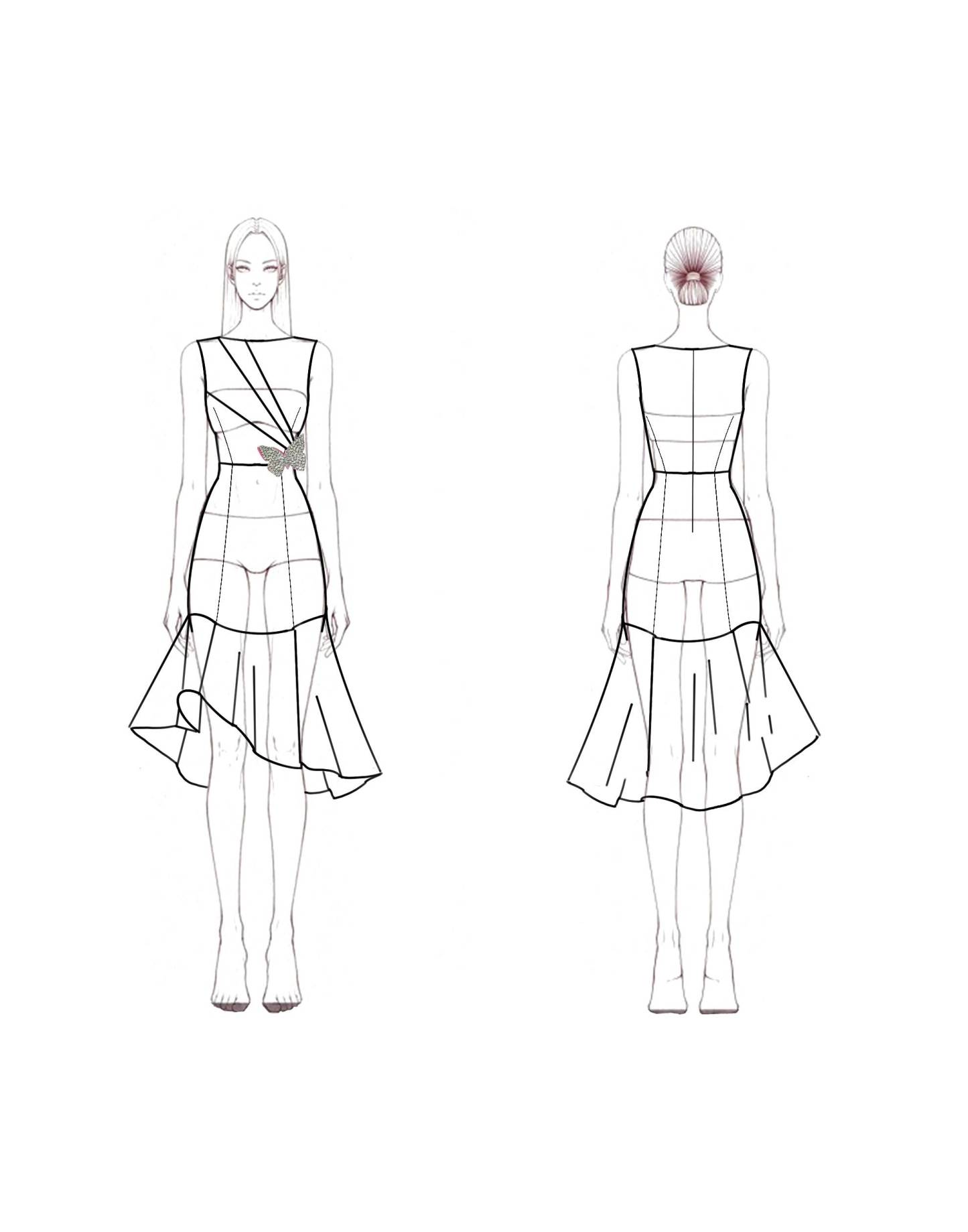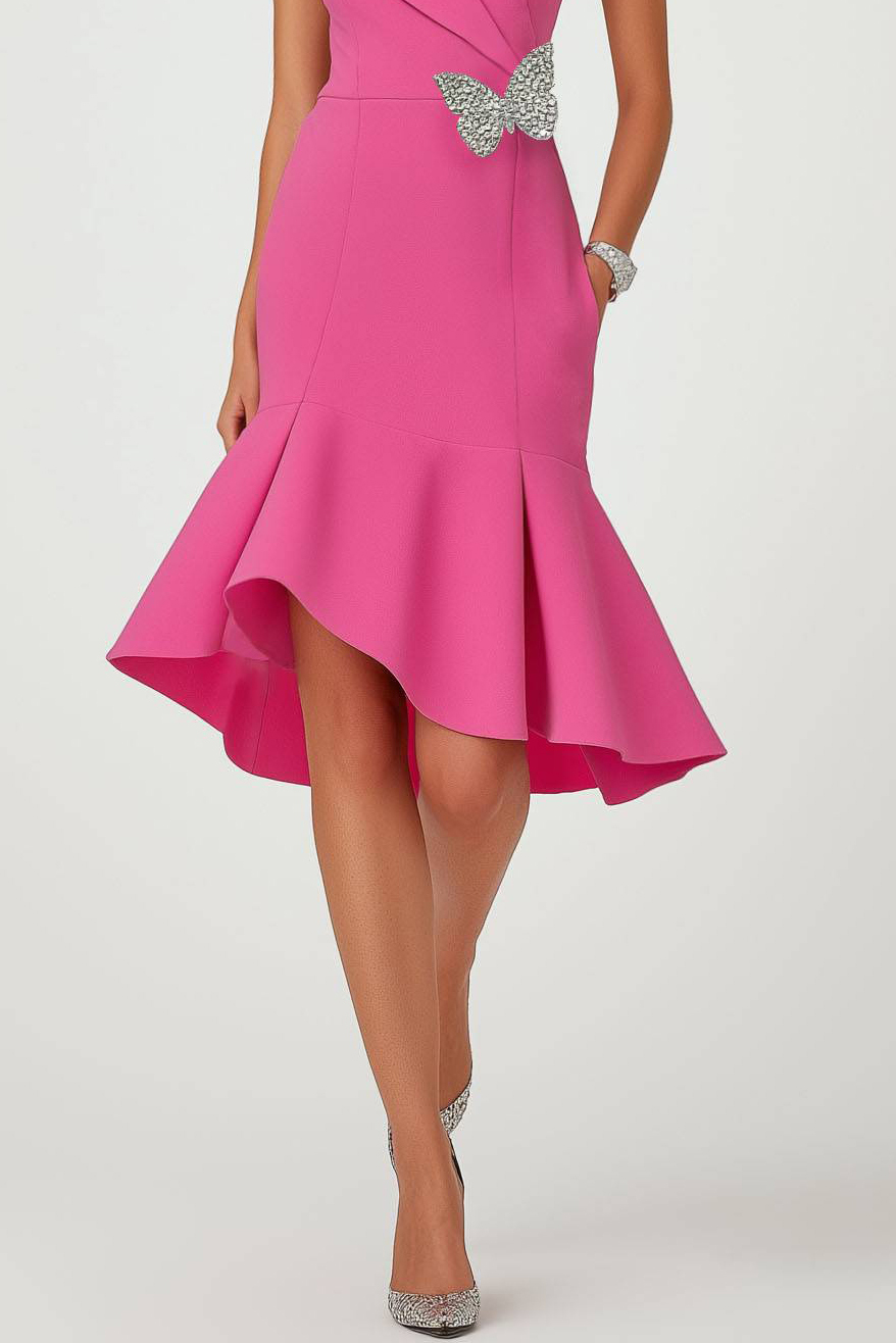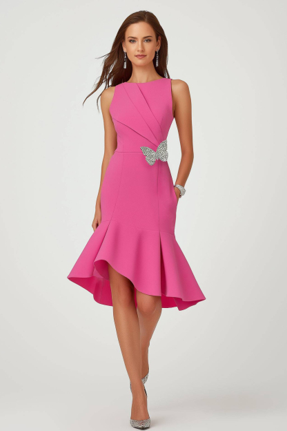 Semi-Formal Party Dress Pink Round Neck Butterfly Mermaid Midi Dress