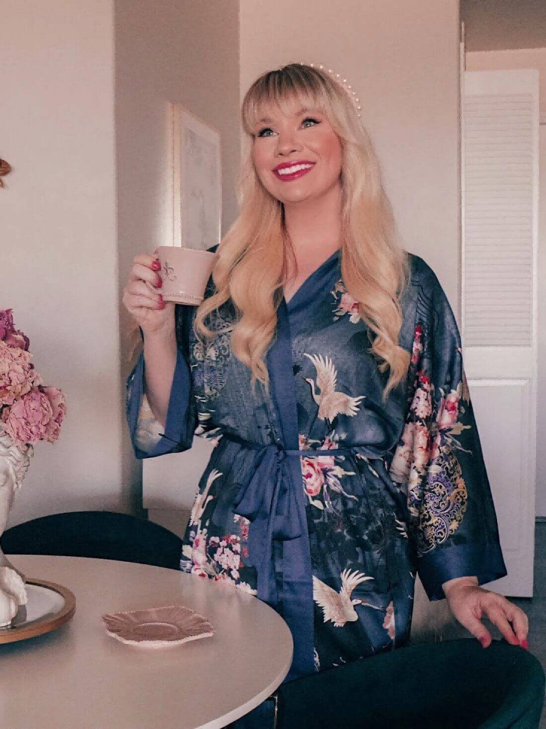 Wrap yourself in the luxurious feel of our ultra-soft, high-quality fabric, adorned with hand-painted floral prints. Designed to care for your skin morning and night, our robe kisses away wrinkles, ensuring joy for every occasion. Experience unmatched comfort and elegance, making each moment a celebration of beauty.