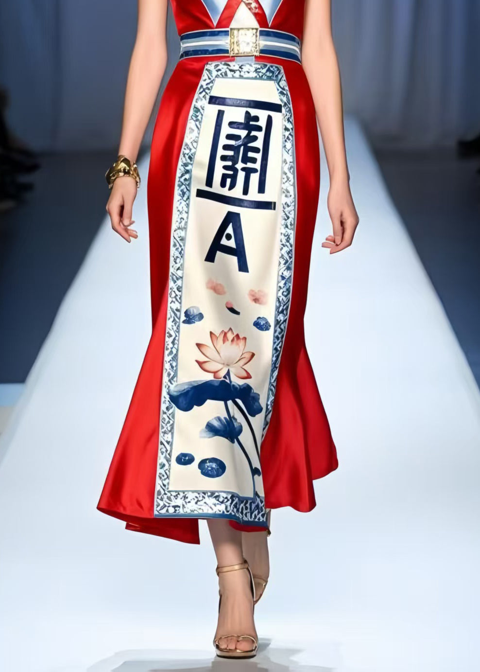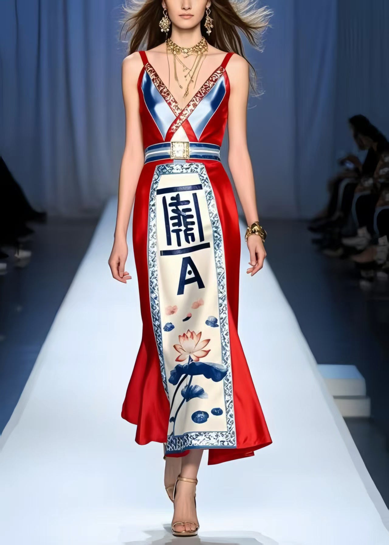 Silm Fit Red V Neck Print Silk Mini Dress Summer