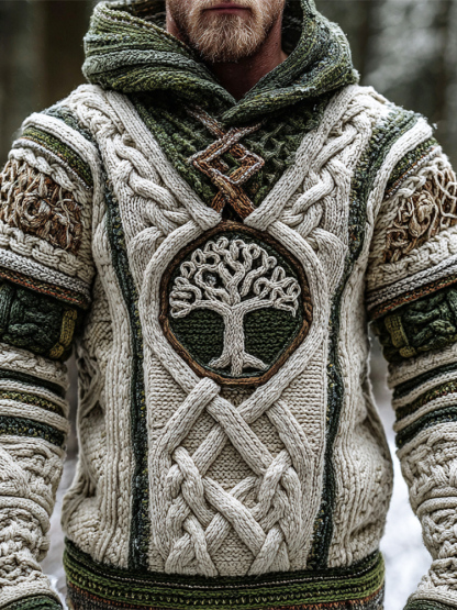 Viking Celtic Tree Knit Art Men's Hooded Sweater