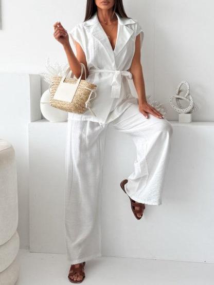 White Sleeveless Suit Wide-leg Pants Two-piece Suit