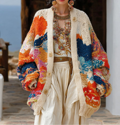 Women's Colorful charm pattern knitted short cardigan
