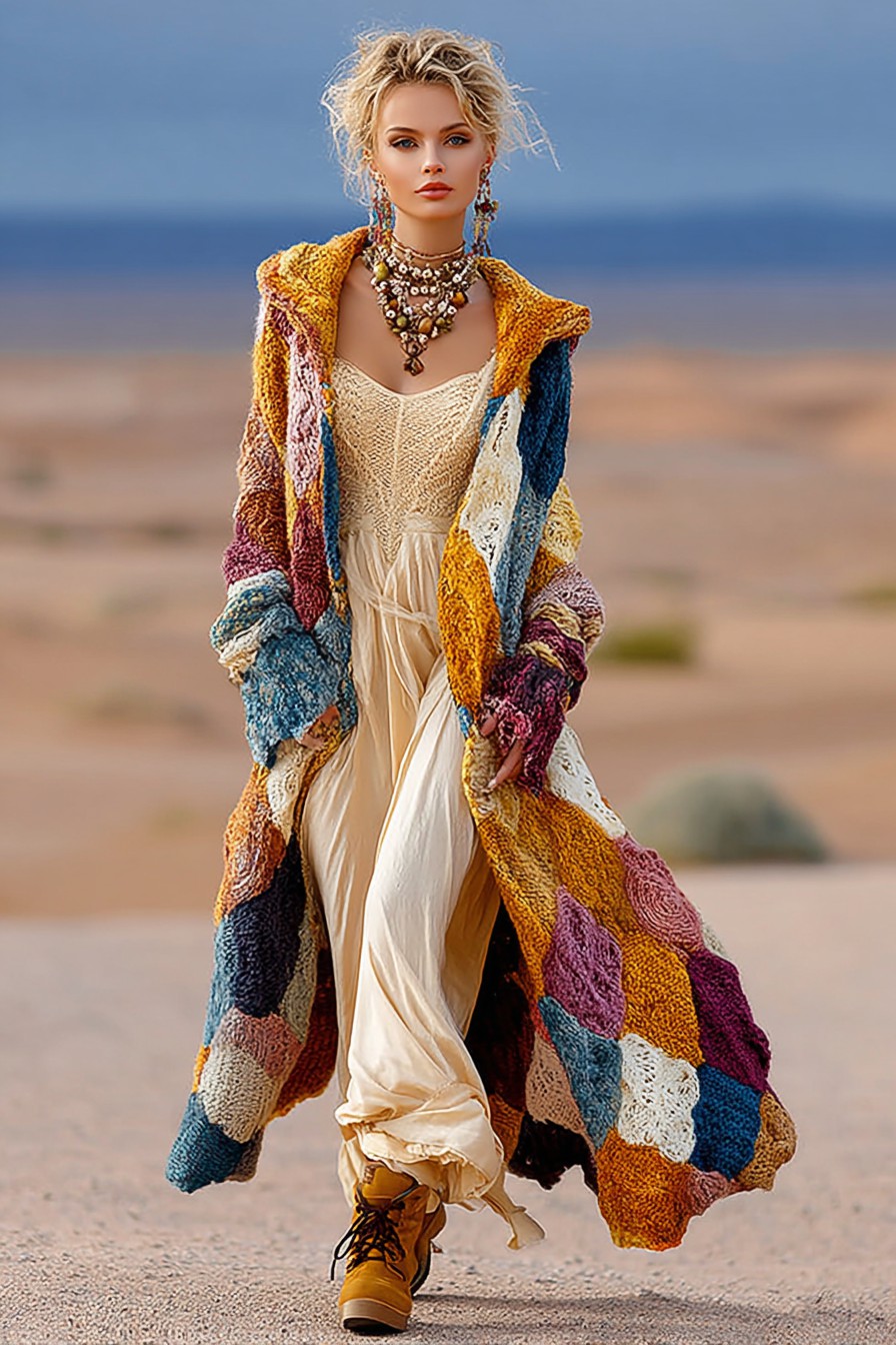 Women's Colorful Rainbow Patchwork Pattern Print Cardigan