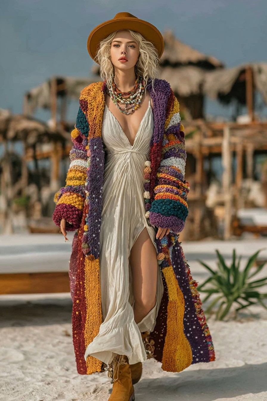 Women's Colorful Rainbow Patchwork Pattern Print Cardigan