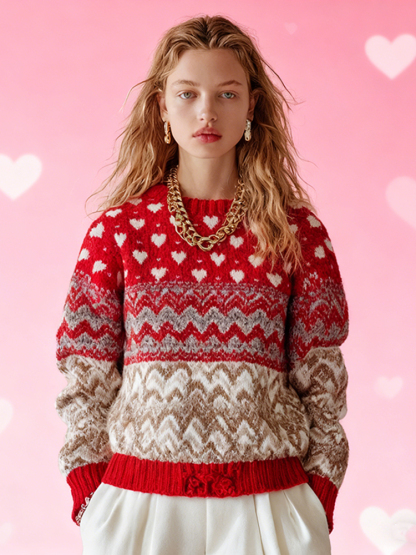 Women's Valentine's Day Heart Pattern Comfortable Knit Sweater