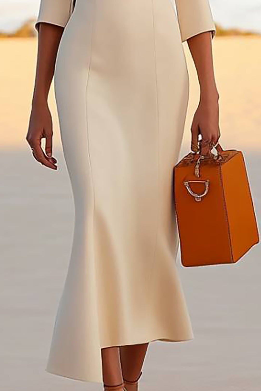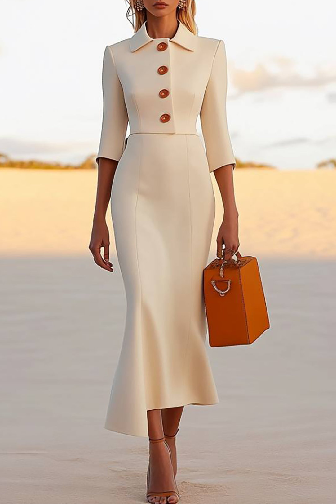 Work Semi-Formal Dress White Collared Mermaid Midi Dress